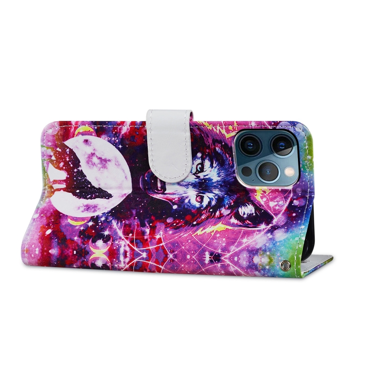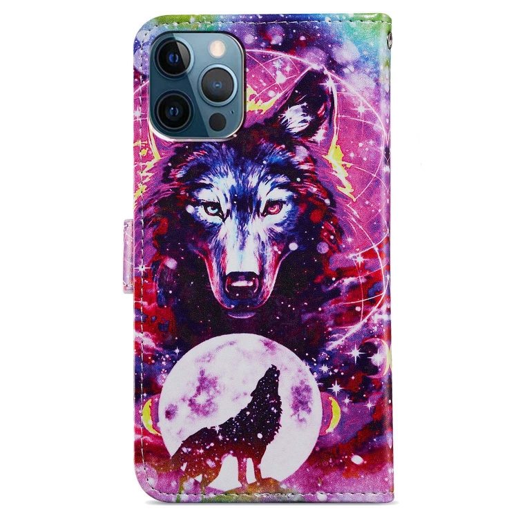 Funda de Teléfono para iPhone 15 Pro Max Cuero con Dibujo a Color (Tótem de Lobo)