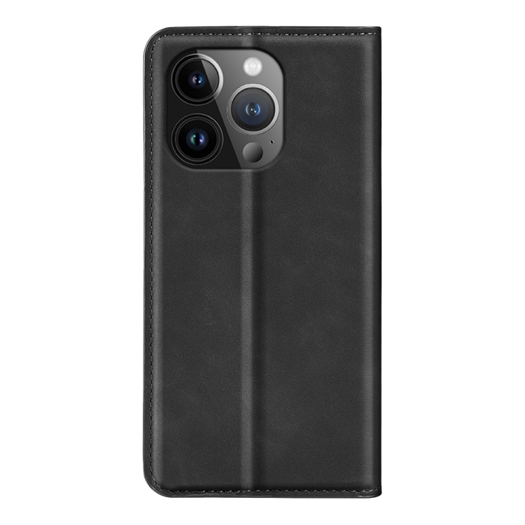 Funda de Teléfono iPhone 15 Pro Max Cuero con Succión Magnética Piel Retro (Negro)