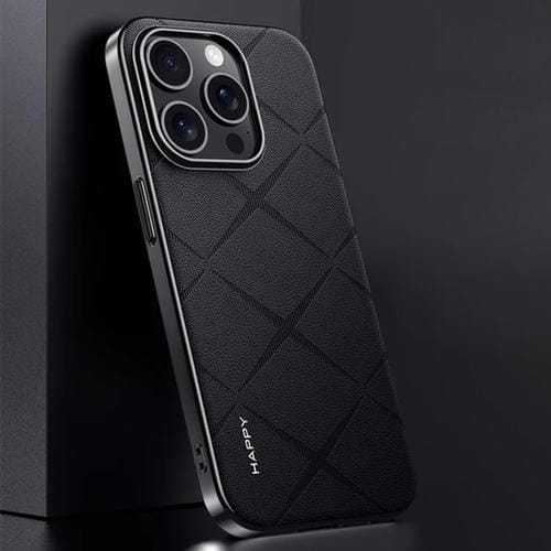 Funda de teléfono para iPhone 15 Pro Max PC cuero liso (Negro)