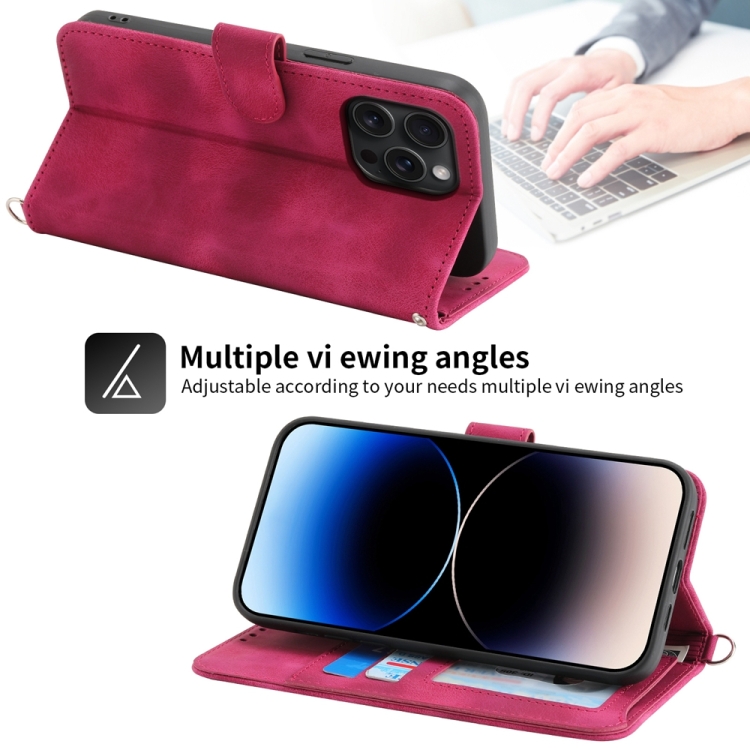 Funda para Teléfono Apple iPhone 15 Pro Max Cuero con Billetera en Relieve y Flores (Rojo Vino)