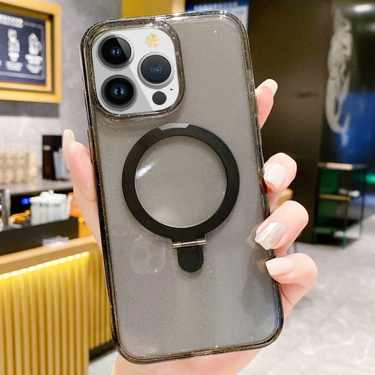 Estuche Magnético para Teléfono iPhone 15 Pro Max Glitter Magsafe con Soporte (Negro)
