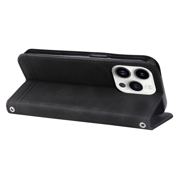 Funda de Cuero Skin Feel Life Tree para iPhone 15 Pro Max (Negro)