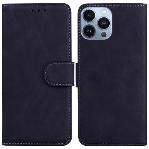 Funda para iPhone 15 Pro Max Skin Feel Pure Color Cuero con Tapa (Negro)