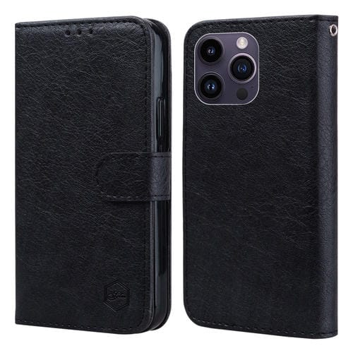 Funda para Teléfono iPhone 15 Pro Max Skin Feeling Oil Textura de Cuero Pu + TPU (Negro)