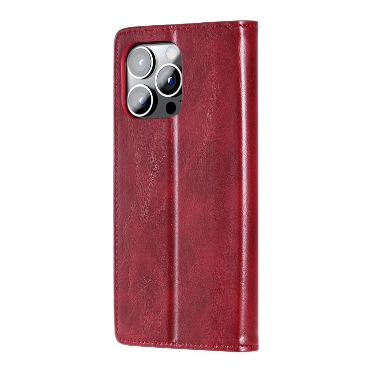 Funda de teléfono Ttudrch para iPhone 15 Pro Max con protección RFID cuero magnético textura retro (Rojo)