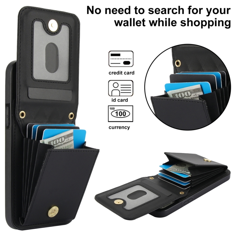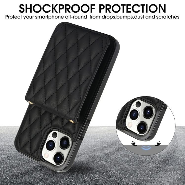 Funda para Teléfono iPhone 15 Pro Max Ym015 Rfid Bolsa para Tarjeta Rómbica Cruzada (Negro)