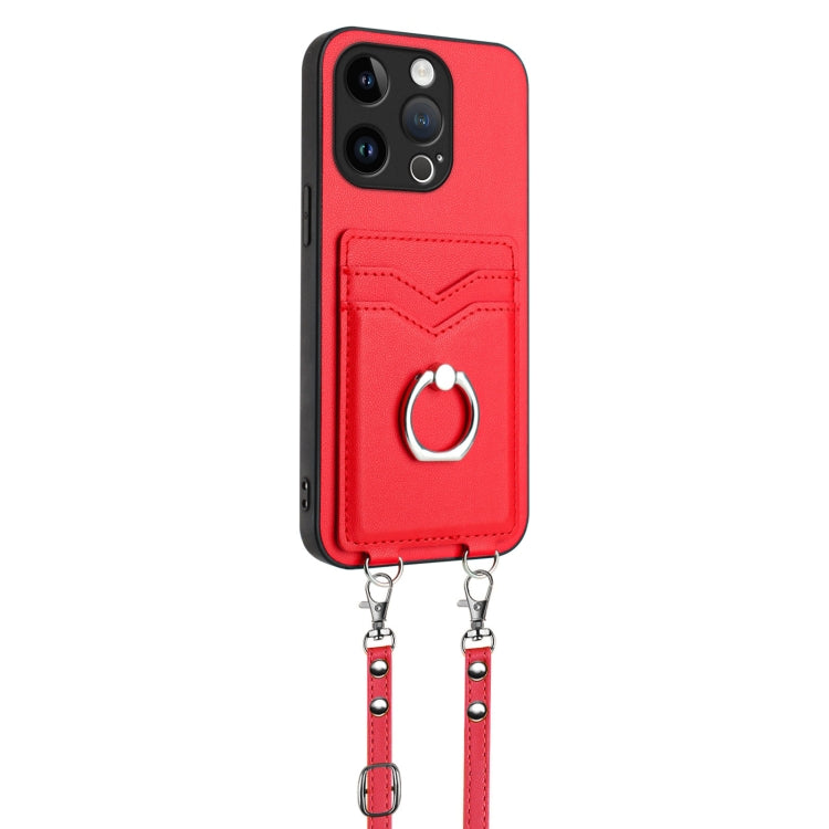 Funda para Teléfono iPhone 15 Pro R20 con Soporte para Tarjeta y Anillo de Cuerda Cruzada (Rojo)