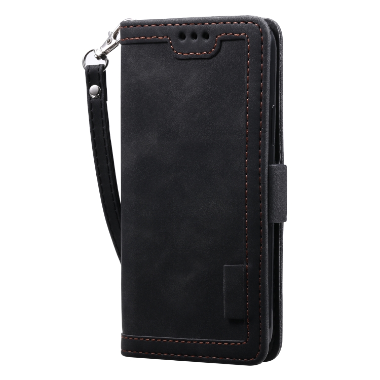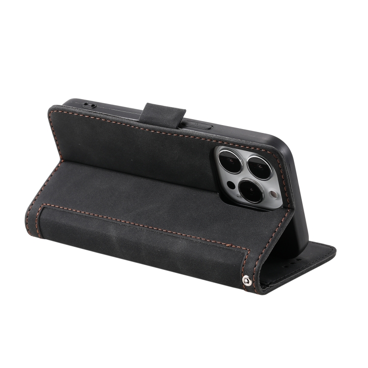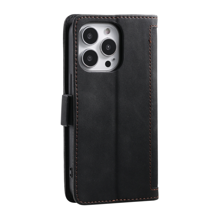 Funda para iPhone 15 Pro Retro Splicing Horizontal Flip de Cuero (Negro)
