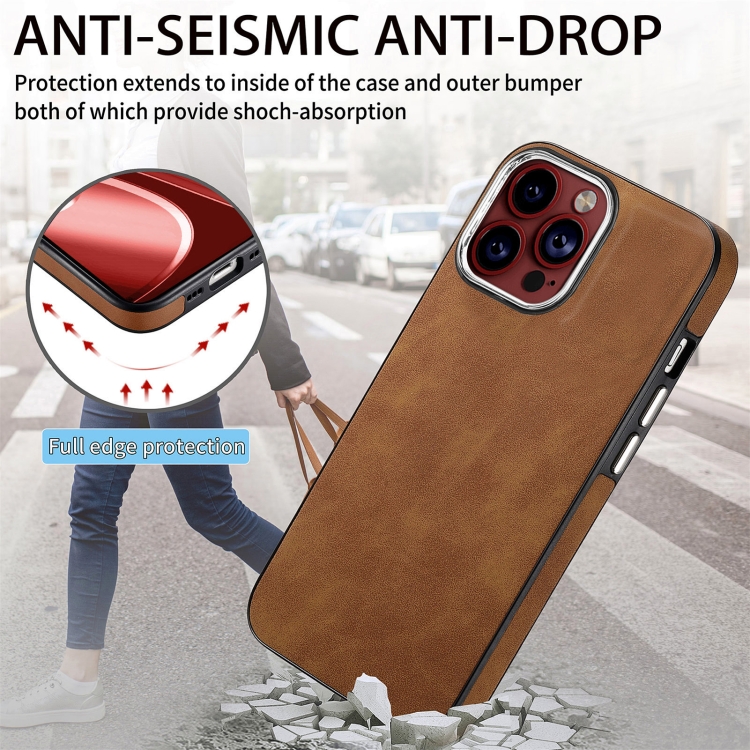 Funda para Teléfono iPhone 15 Pro Skin-Feel Galvanoplastia TPU a Prueba de Golpes (Marrón)