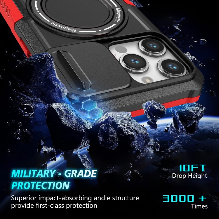 Funda para Teléfono iPhone 15 Pro Sliding Camshield Magsafe Holder TPU Hybrid (Negro Rojo)