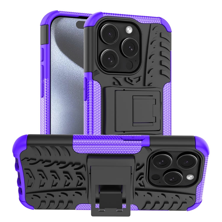 Funda para Teléfono iPhone 15 Pro Tire Texture TPU + PC con Soporte (Púrpura)