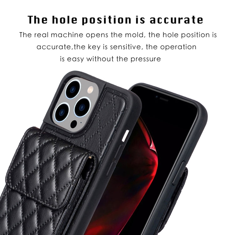 Funda Vertical Wallet Rhombic de Cuero para iPhone 15 Pro (Negro)
