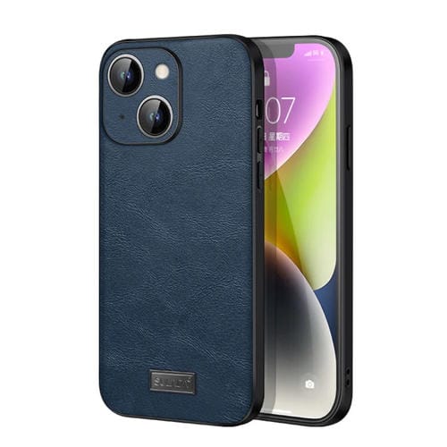 Funda para iPhone 15 Sulada TPU a Prueba de Golpes y Cuero Hecha a Mano (Azul)