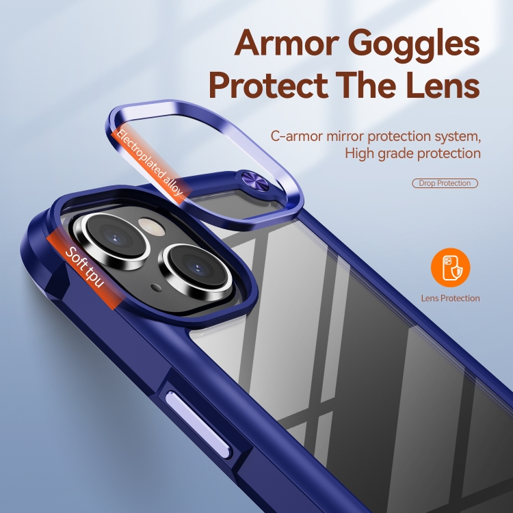 For iPhone 15 TPU + PC Lens Protection Phone Case(Blue)