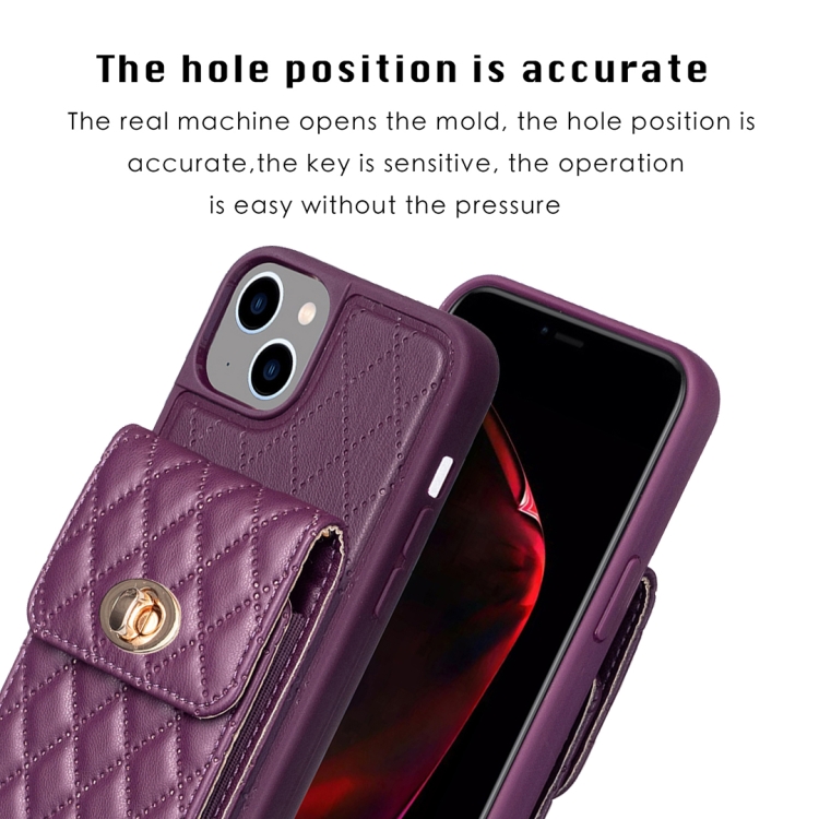 Funda de Cuero Vertical Wallet Rhombic para iPhone 15 (Púrpura Oscuro)