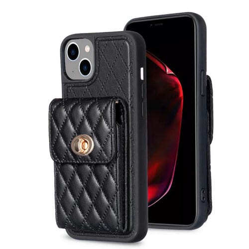 Funda Vertical Wallet para iPhone 15 Rhombic Cuero (Negro)