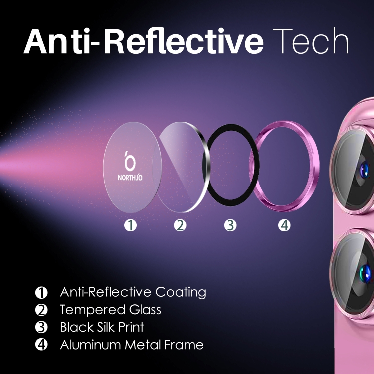Cubierta Protectora Lente Cámara Northjo iPhone 16 16 Plus Anillo Metal (Rosa) 2 Juegos 4 Piezas