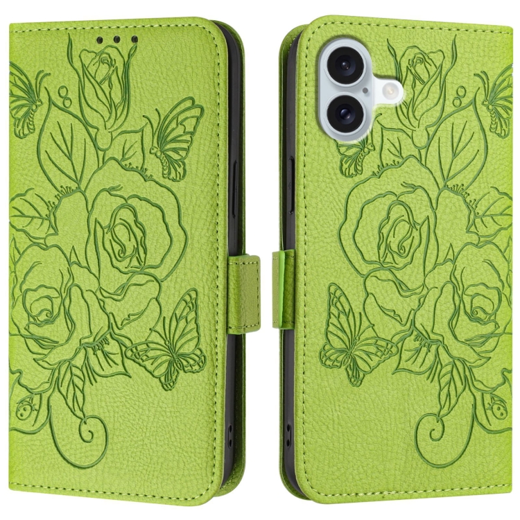Funda de Teléfono iPhone 16 Cuero Antirrobo RFID Rosa En Relieve (Verde)