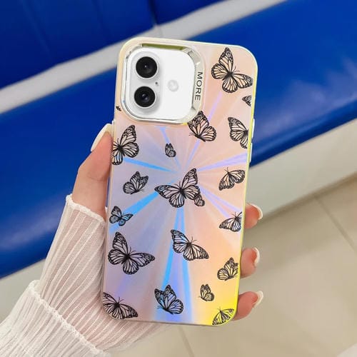 Funda para Teléfono iPhone 16 Mariposa Láser Galvanizada (Mariposas Negras)