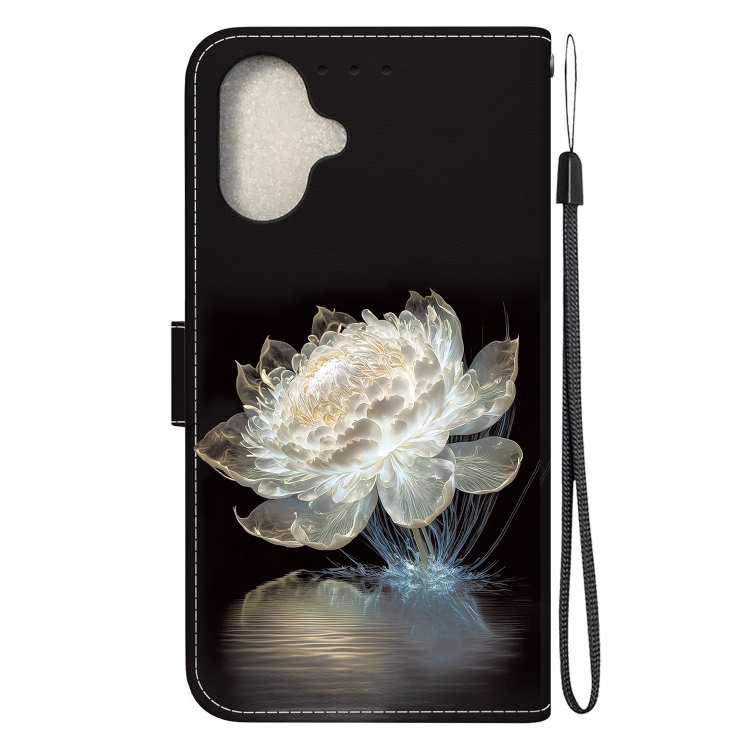 Funda para Teléfono iPhone 16 Cuero Dibujo Coloreado Textura de Cristal (Peonía de Cristal)