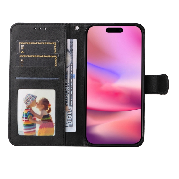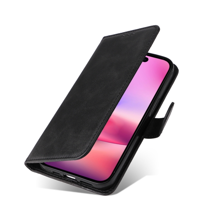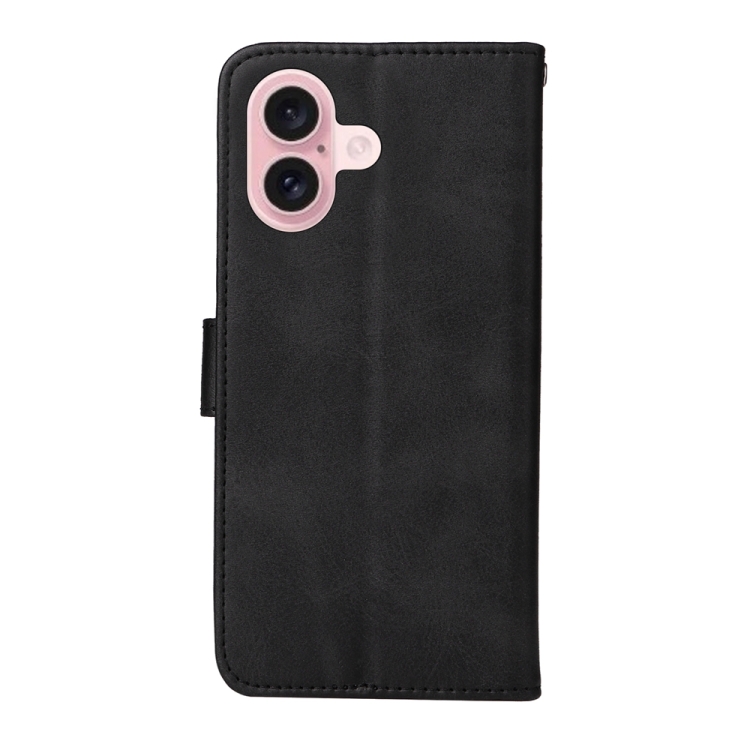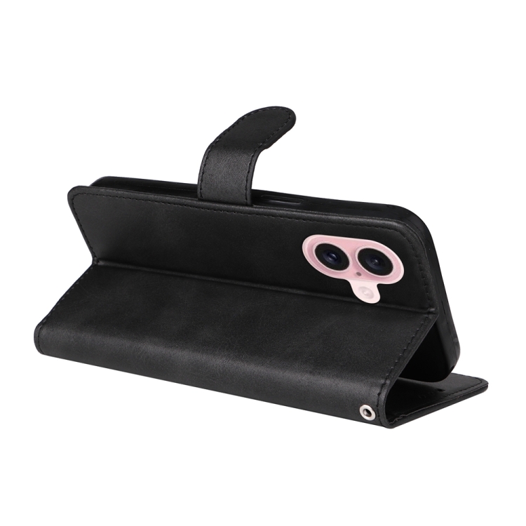 Funda para Teléfono iPhone 16 Cuero con Tapa Textura de Becerro (Negro)