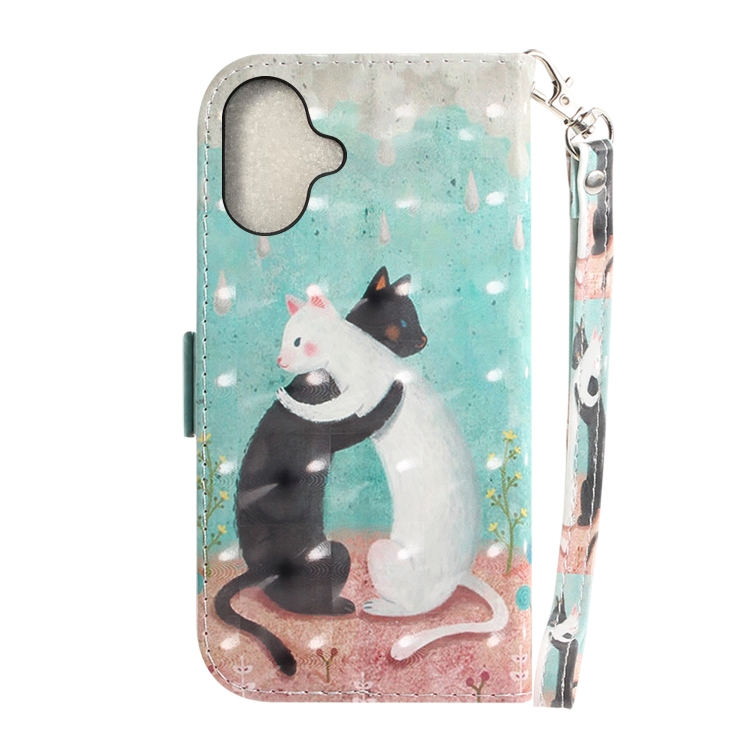 Funda para Teléfono iPhone 16 Cuero con Tapa Horizontal 3D (Gato Blanco y Negro)