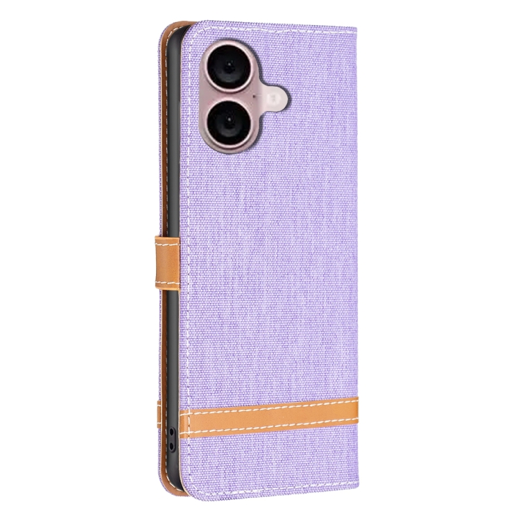 Funda para Teléfono iPhone 16 Cuero Textura Vaquera Bloques de Color (Púrpura)