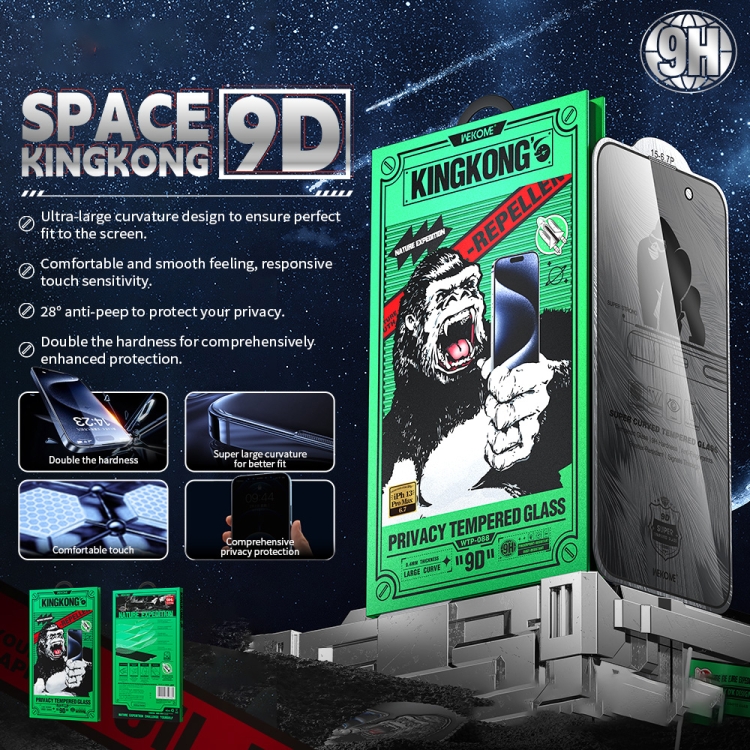 Película de Vidrio Templado WK WTP-088 Space King Kong para iPhone 16 Plus y 15 Plus con Protección de Privacidad 28 Grados y Curva 9D