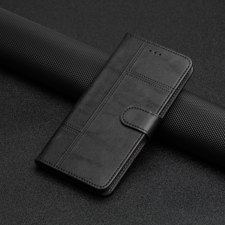 Funda para Teléfono iPhone 16 Plus Cuero Costuras Textura Piel de Vaca (Negro)