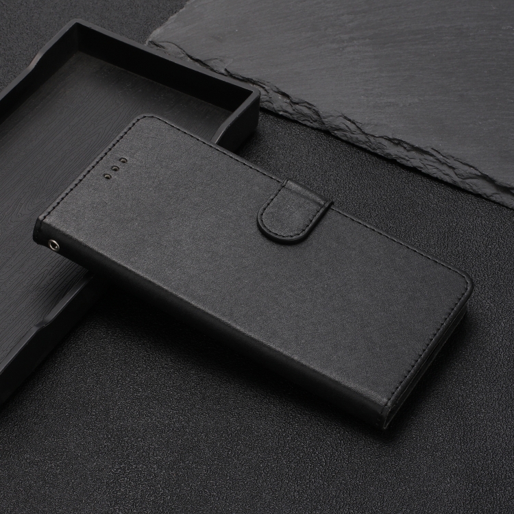 Funda para Teléfono iPhone 16 Plus Cuero con Tapa Horizontal Textura de Seda (Negro)