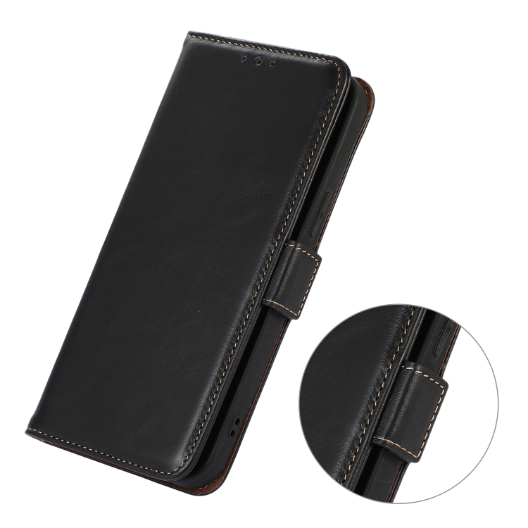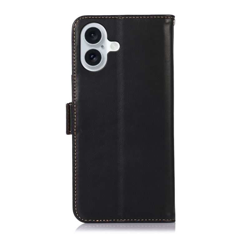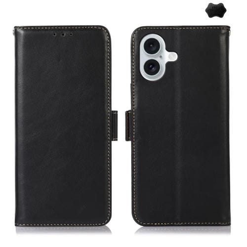 Funda para Teléfono iPhone 16 Plus Cuero de Vaca Capa Superior Crazy Horse (Negro)