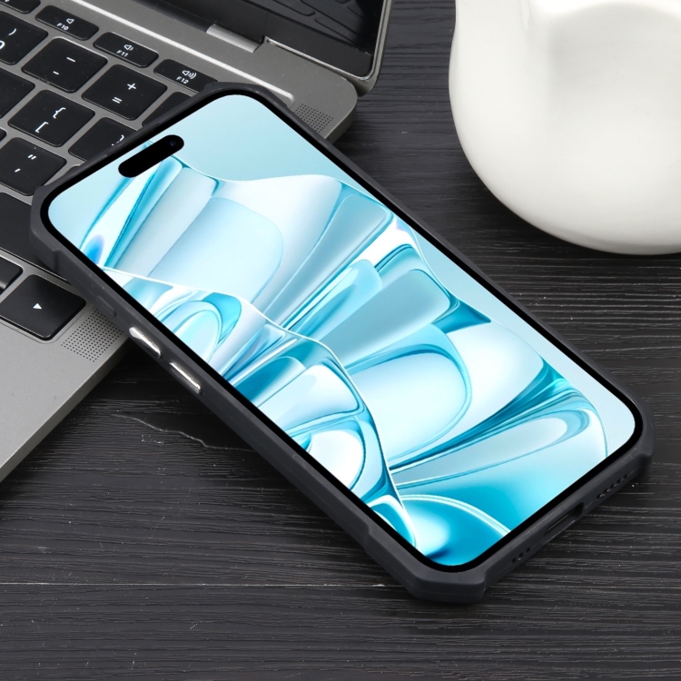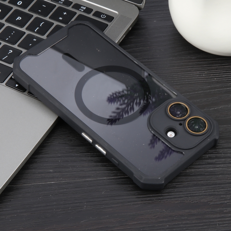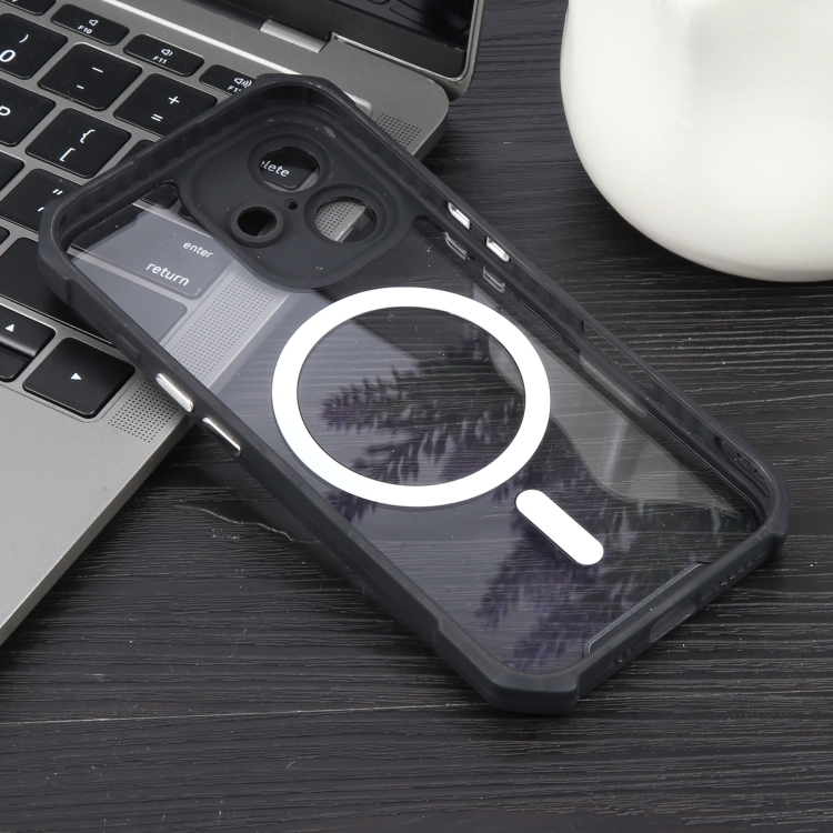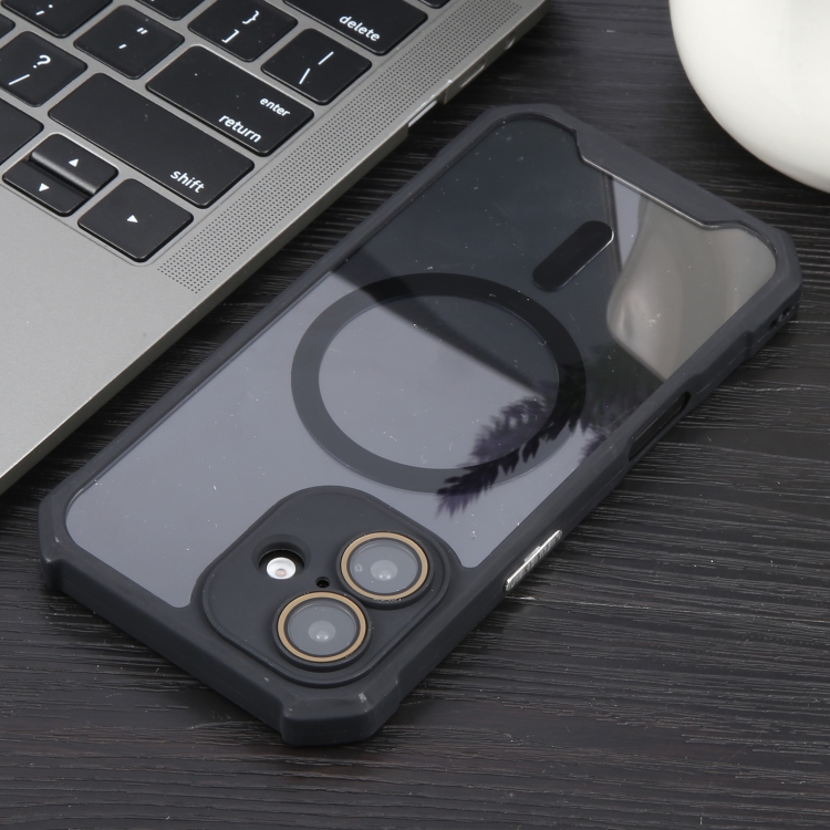Funda para iPhone 16 Plus Acrílico + TPU con Bocina Magnética Magsafe y Película de Lente Dos Colores (Negro)