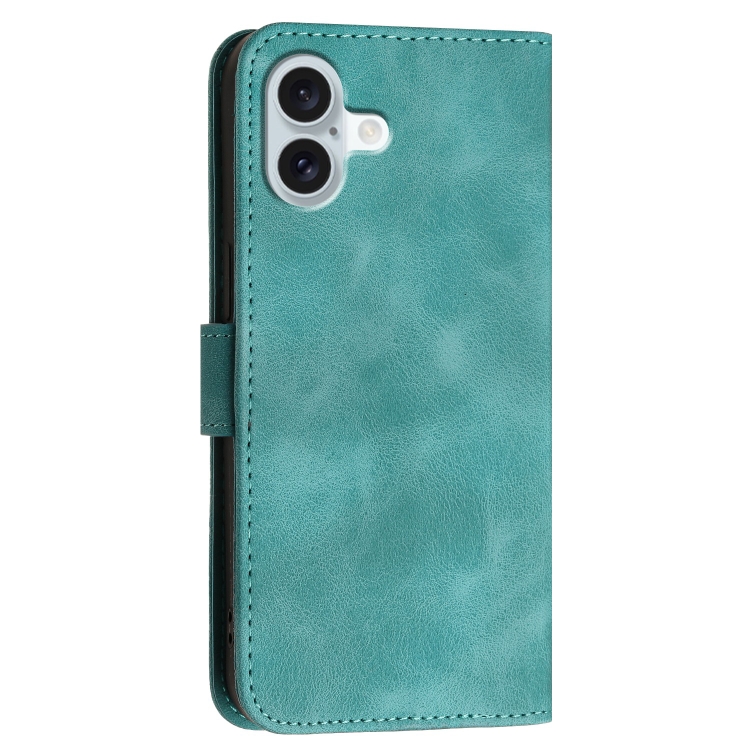 Funda de Cuero para iPhone 16 Plus Yx0080 con Tapa y Cordón Diseño Mariposas (Azul Claro)