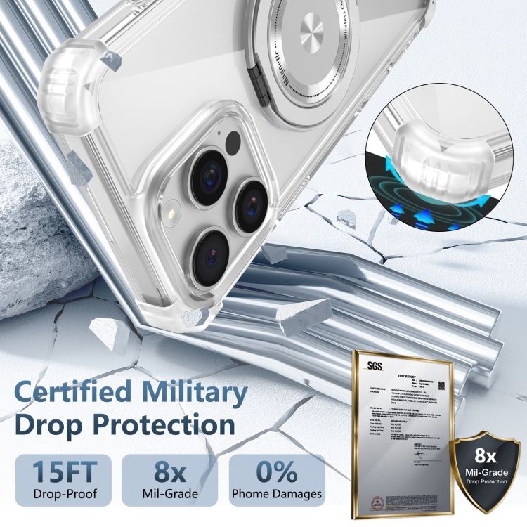 For iPhone 16 Pro Gold Shield CD Pattern Magnetic MagSafe Phone Case with Rotatable Kickstand (Clear)