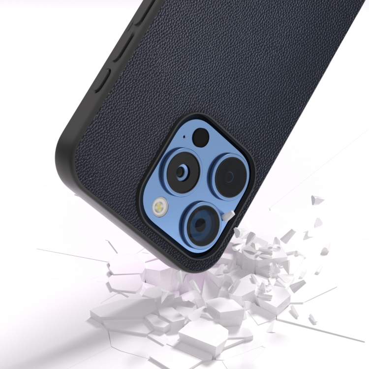 Funda para Teléfono Abeel iPhone 16 Pro Max Cuero Genuino Marco Negro (Azul)