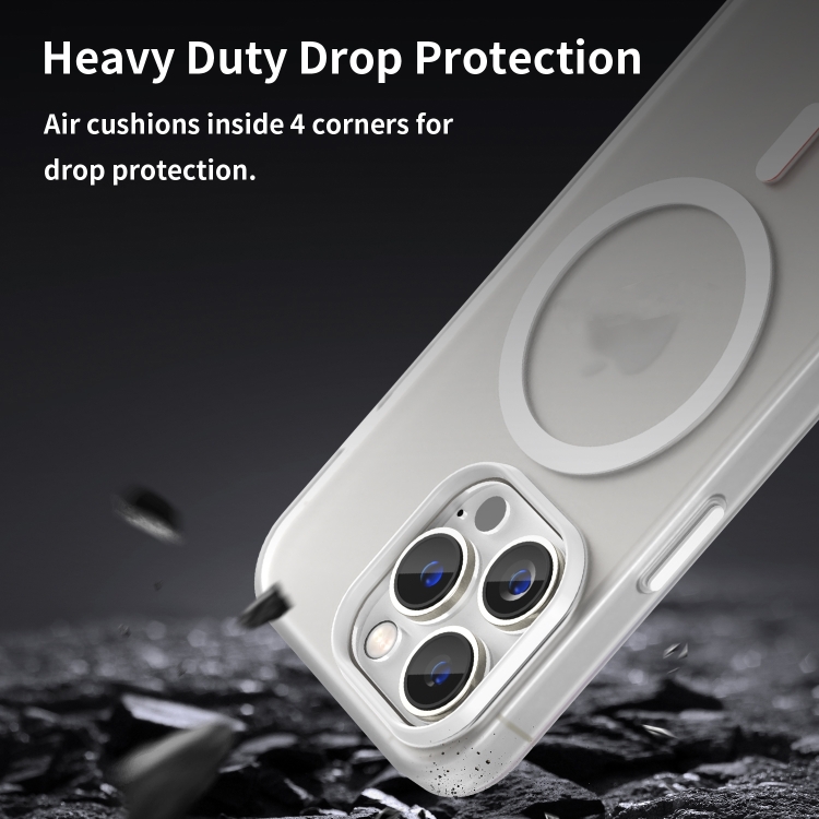 6. Material: marco de lente de PC + panel posterior de TPU translúcido mate + anillo de succión magnético inalámbrico