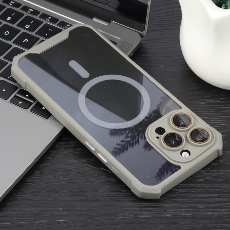 Funda para iPhone 16 Pro Max Acrílico + TPU con Bocina Magnética Magsafe y Película de Lente Dos Colores (Gris)