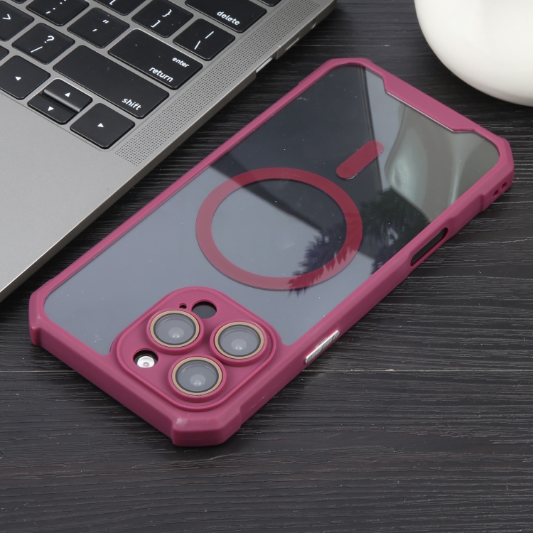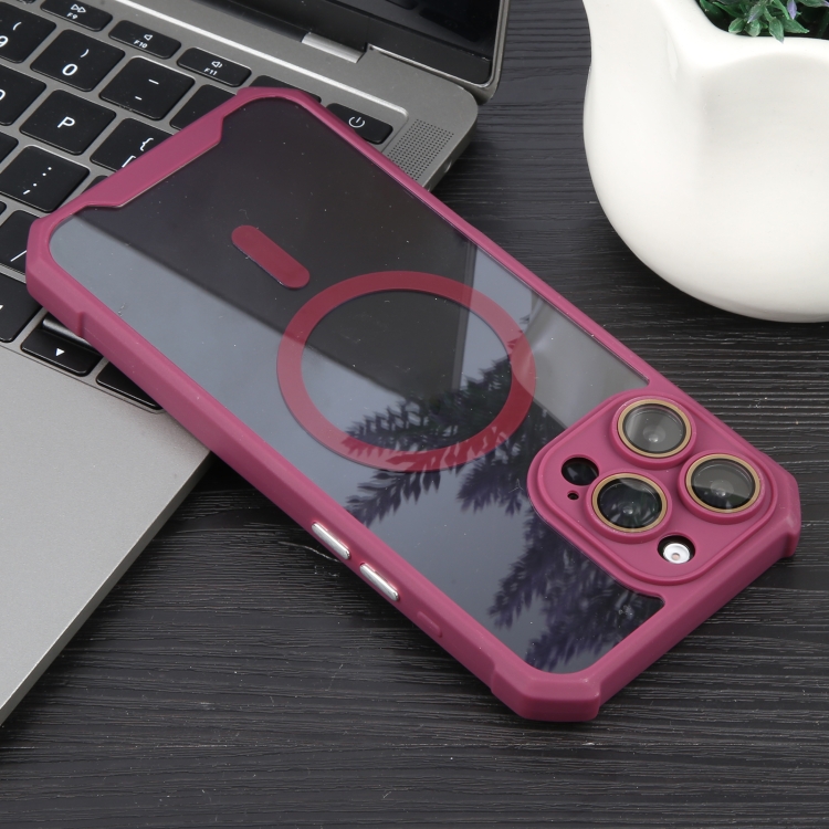 Funda para iPhone 16 Pro Max Acrílico + TPU con Bocina Magnética Magsafe y Película de Lente Dos Colores (Roja)