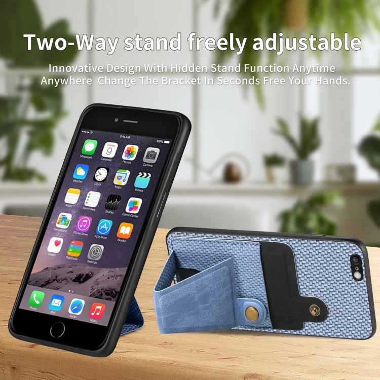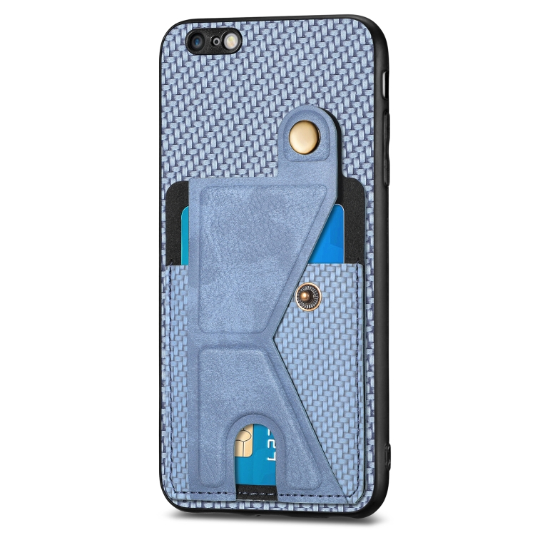 Funda para Teléfono iPhone 6 / 6S Carbon Fiber Wallet Flip Card con Soporte en Forma de K (Azul)