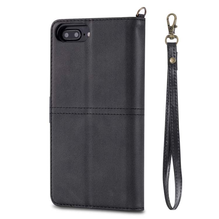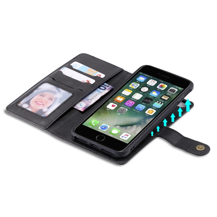 Estuche de Cuero para iPhone 6 Plus 7 Plus 8 Plus con Tapa Horizontal Magnética Desmontable Multifuncional (Negro)