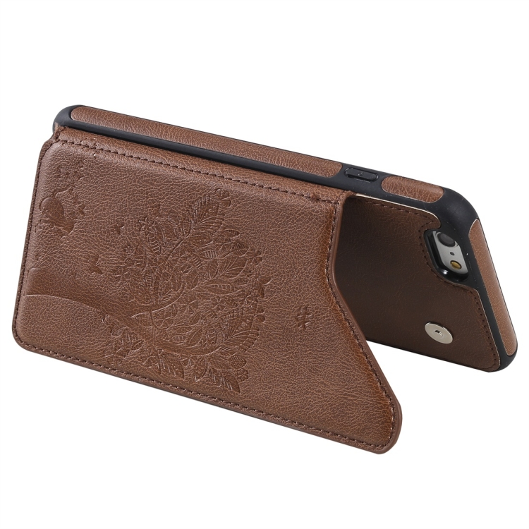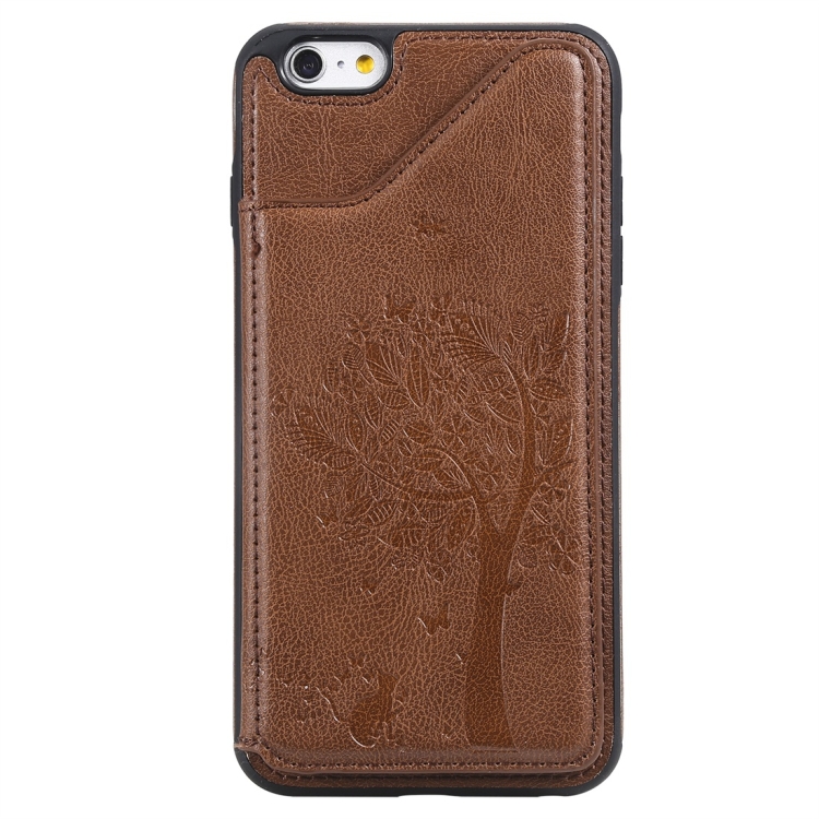 Funda Protectora para iPhone 6 Plus Cat Tree Engessing Pattern con Ranuras de Tarjetas y Marco de Fotos (Marrón)