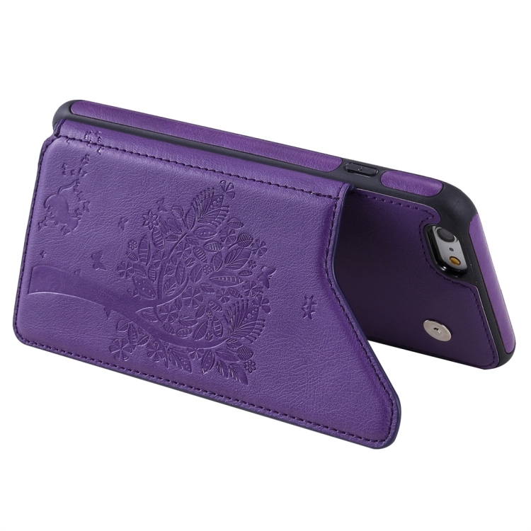 Funda Protectora para iPhone 6 Plus Cat Tree Engessing Pattern a Prueba de Golpes con Ranuras de Tarjetas y Marco de Fotos (Púrpura)