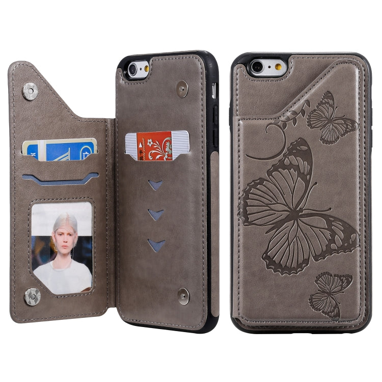 Estuche protector para iPhone 6 Plus estampado en relieve de mariposa a prueba de golpes con soporte, ranuras para tarjetas y marco de fotos (Gris)