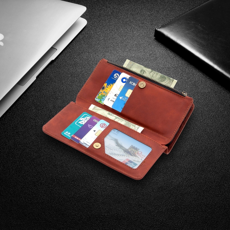 4. Diseño multifuncional, ranuras para tarjetas convenientes, billetera con cremallera, soporte, cubierta trasera protectora magnética desmontable.
