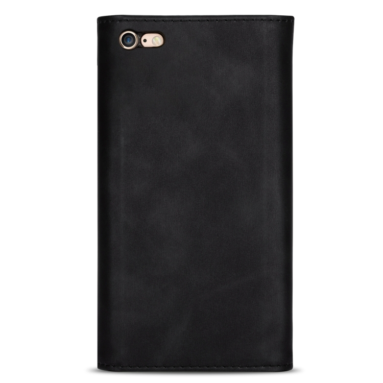 Funda de Cuero iPhone 6 Plus Skin Feel con Tapa Horizontal Soporte Ranuras Tarjetas Marco Fotos Cordón (Negro)
