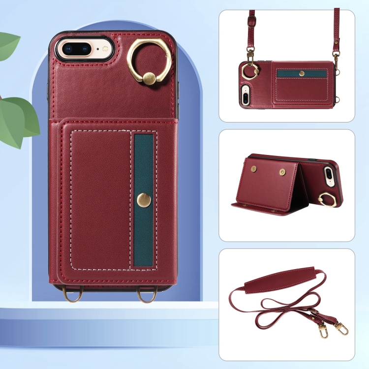 Funda de Cuero Crossbodys Card Bag Ring Holder para iPhone 7/8/Se 2022 (Rojo)
