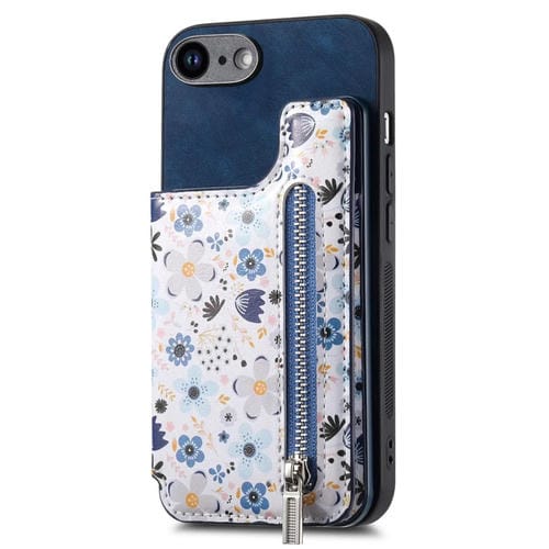 Estuche para Teléfono iPhone 7/8/Se 2022 con Billetera y Cremallera Pintada Retro (Azul)