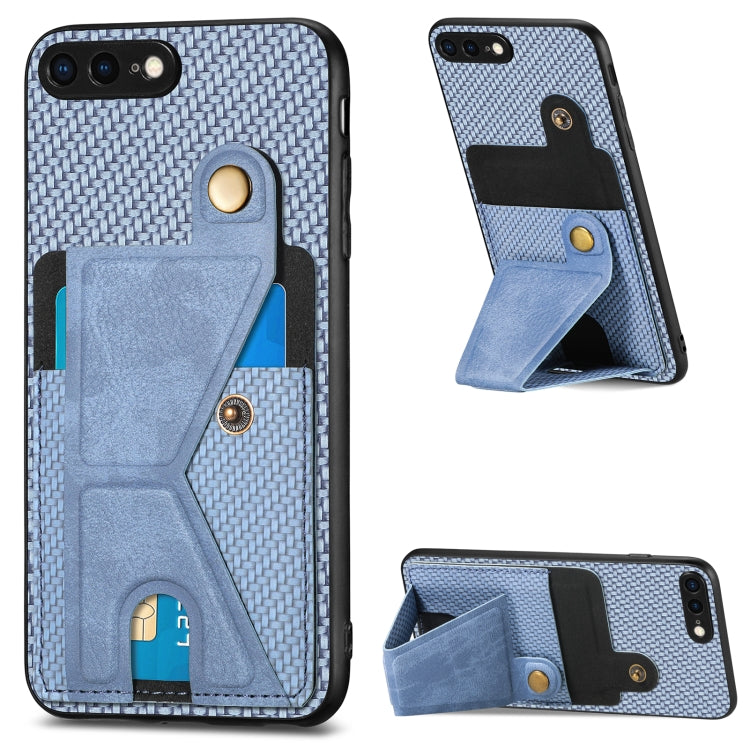Funda Cartera para iPhone 7 Plus 8 Plus Fibra de Carbono Flip Card con Soporte en Forma de K (Azul)