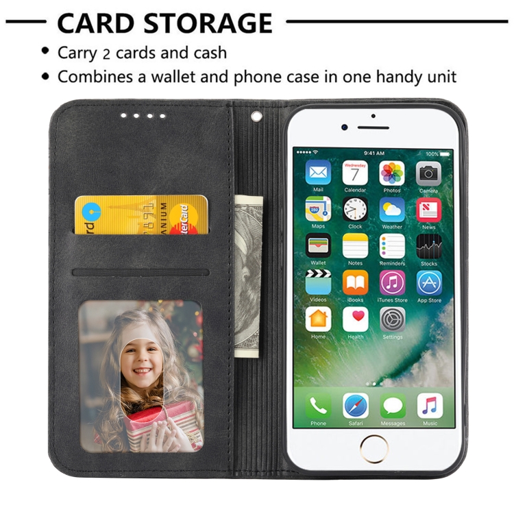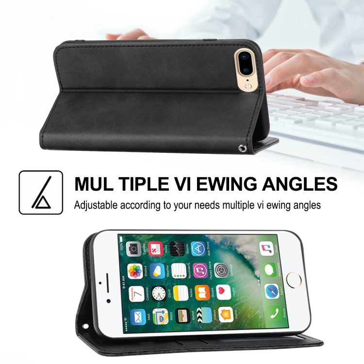 For iPhone 7 Plus/8 Plus Cubic Grid Calfskin Texture Magnetic Closure Leather Phone Case (Black)