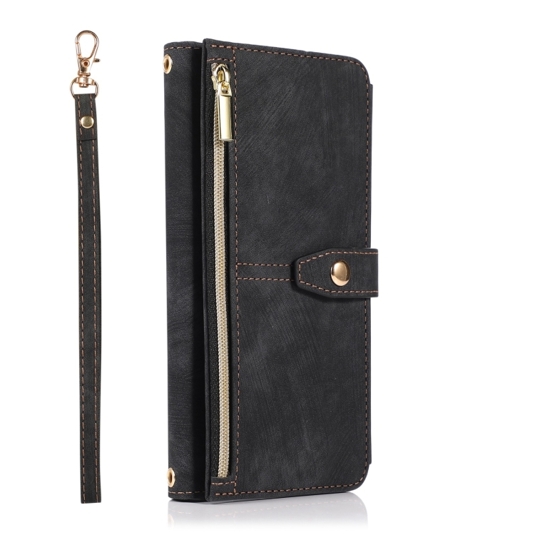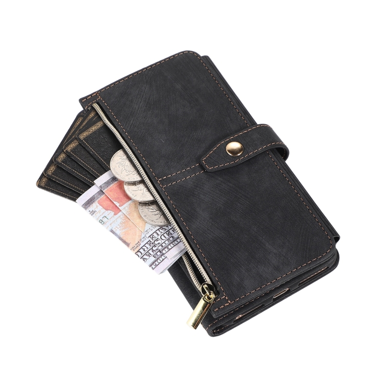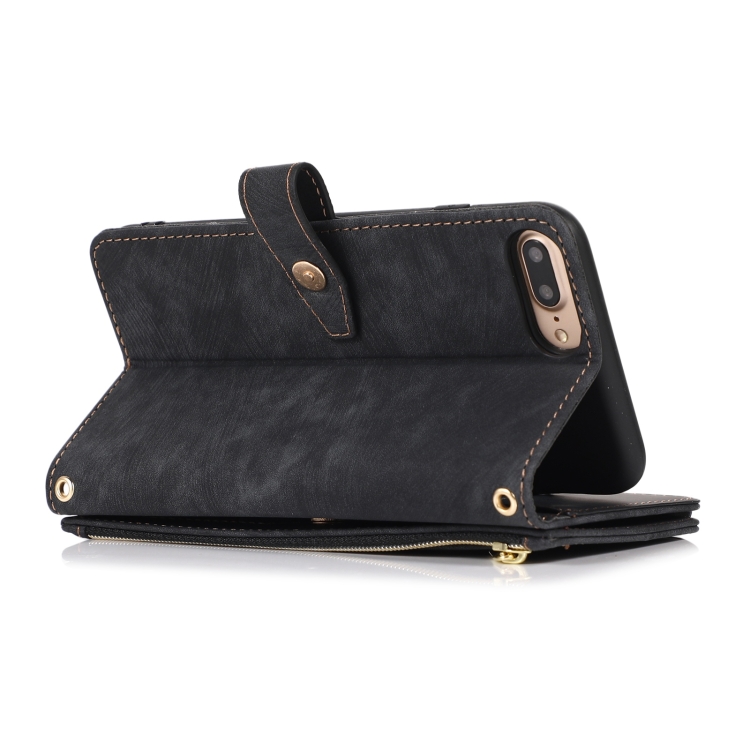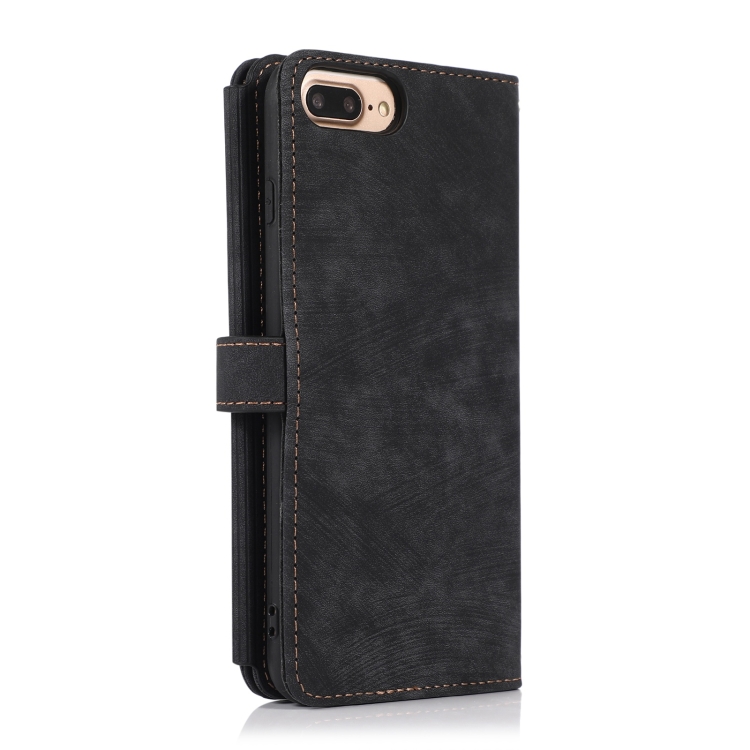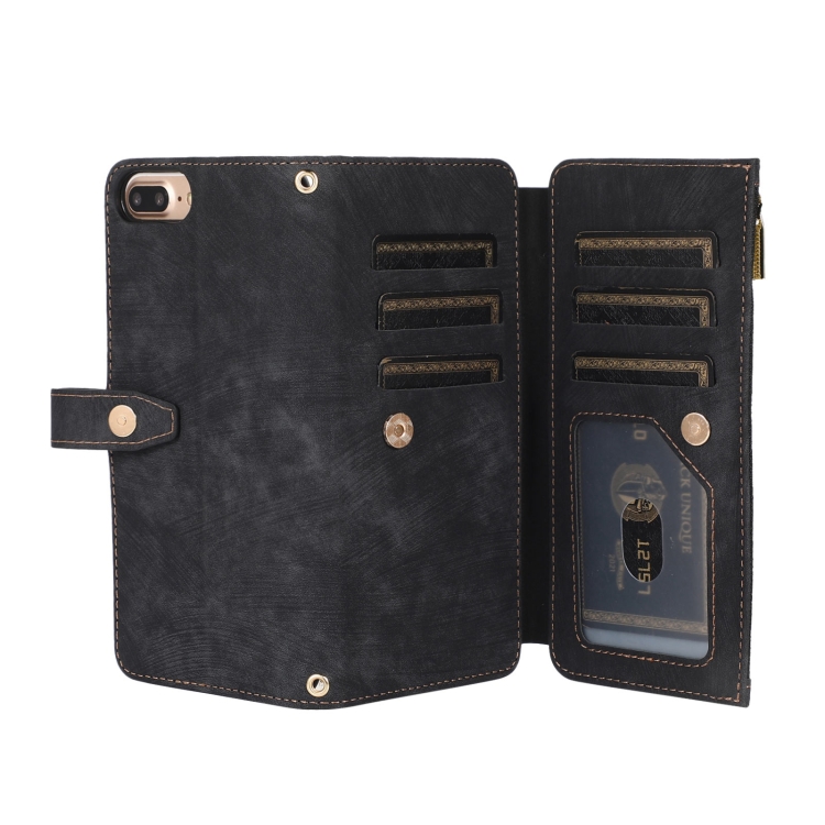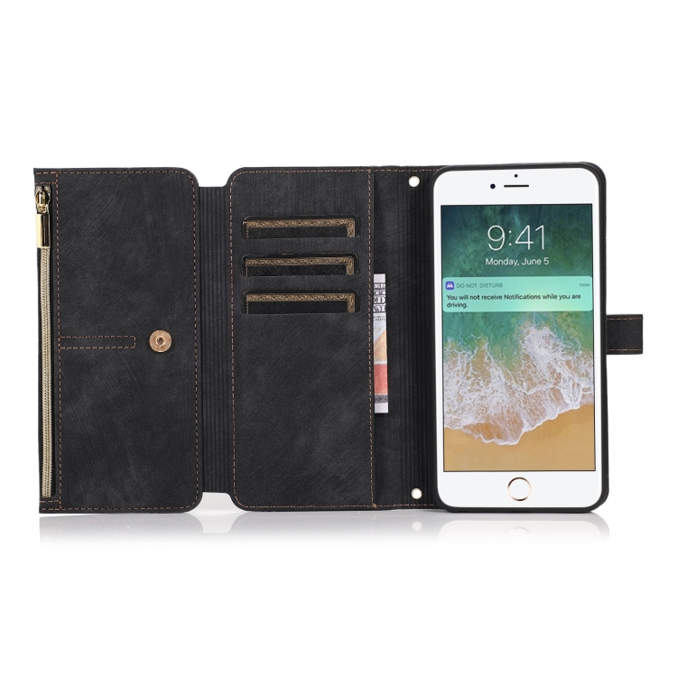 Funda de Cuero para Teléfono iPhone 7 Plus 8 Plus Dream 9-Card Wallet Zipper Bag (Negro)